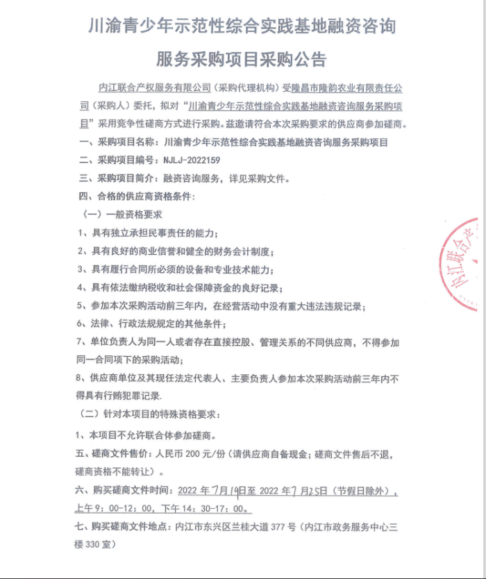 川渝青少年示范性綜合實踐基地融資咨詢服務采購項目采購公告