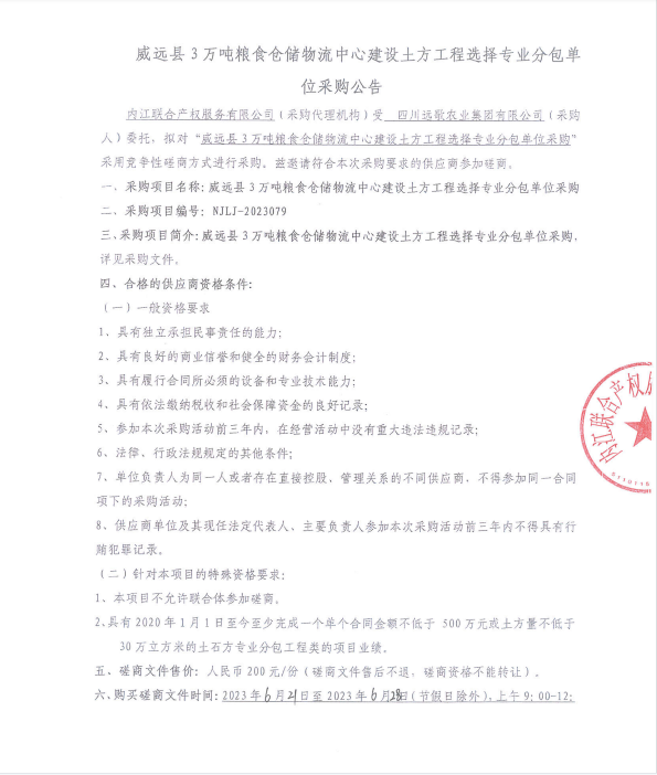 威遠(yuǎn)縣3萬(wàn)噸糧食倉(cāng)儲(chǔ)物流中心建設(shè)土方工程選擇專(zhuān)業(yè)分包單位采購(gòu)公告