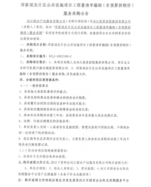 鄧家壩東片區(qū)公共設(shè)施項(xiàng)目工程量清單編制(含預(yù)算控制價(jià))服務(wù)采購(gòu)公告