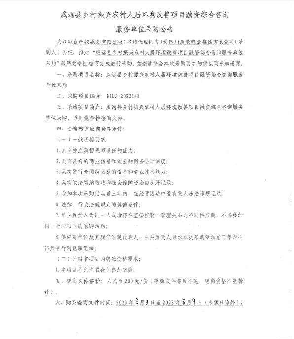 威遠(yuǎn)縣鄉(xiāng)村振興農(nóng)村人居環(huán)境改善項(xiàng)目融資綜合咨詢服務(wù)單位采購公告