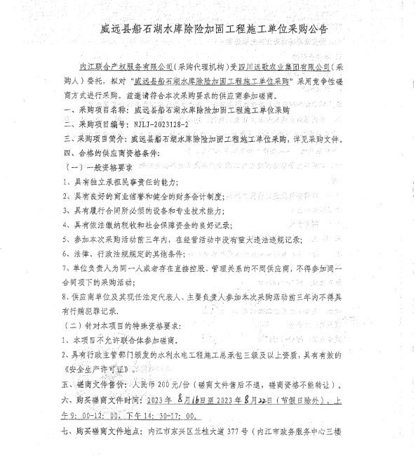威遠(yuǎn)縣船石湖水庫(kù)除險(xiǎn)加固工程施工單位采購(gòu)公告