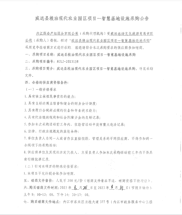 威遠縣糧油現(xiàn)代農(nóng)業(yè)園區(qū)項目—智慧基地設(shè)施采購公告