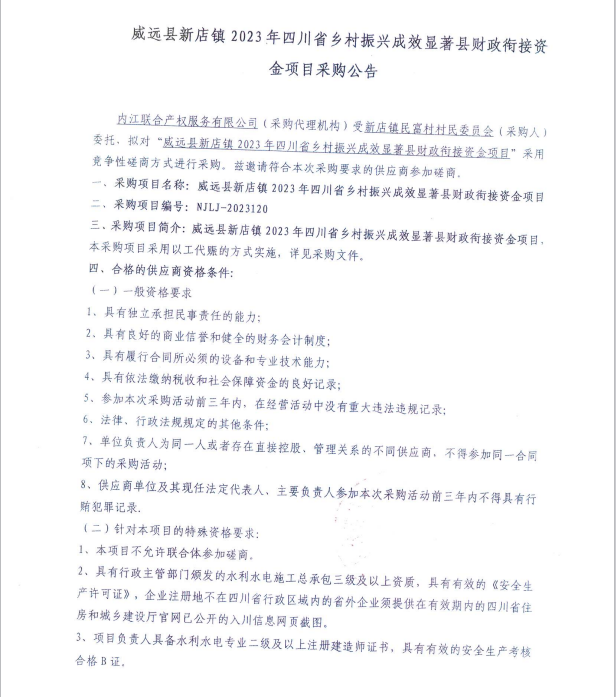 威遠(yuǎn)縣新店鎮(zhèn)2023年四川省鄉(xiāng)村振興成效顯著縣財政銜接資金項(xiàng)目采購公告