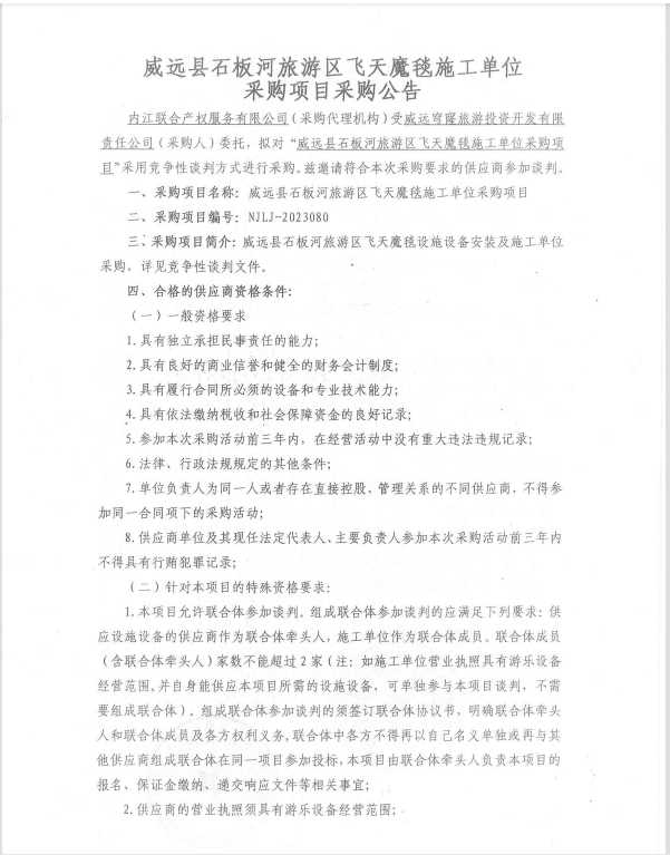 威遠(yuǎn)縣石板河旅游區(qū)飛天魔毯施工單位采購(gòu)項(xiàng)目