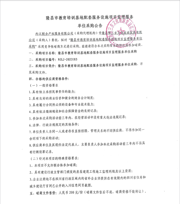 隆昌市教育培訓(xùn)基地配套服務(wù)設(shè)施項(xiàng)目監(jiān)理服務(wù)單位采購公告