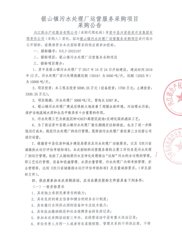 銀山鎮(zhèn)污水處理廠運(yùn)營(yíng)服務(wù)采購(gòu)項(xiàng)目采購(gòu)公告