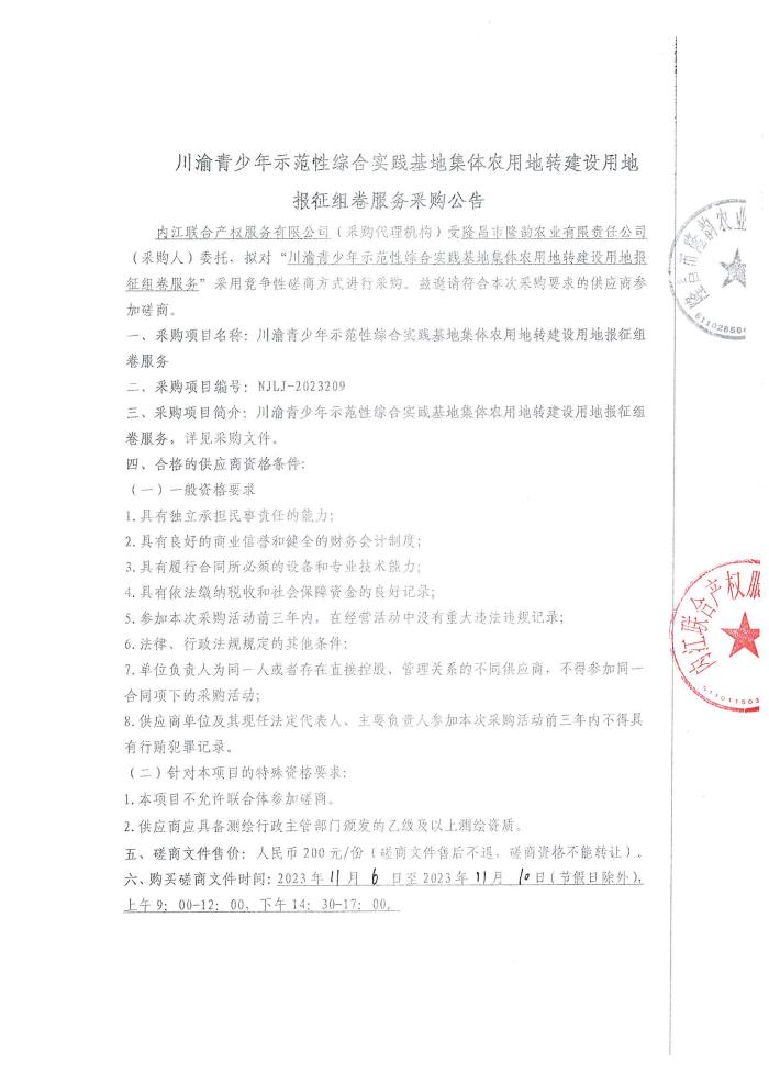 川渝青少年示范性綜合實(shí)踐基地集體農(nóng)用地轉(zhuǎn)建設(shè)用地報(bào)征組卷服務(wù)采購(gòu)公告