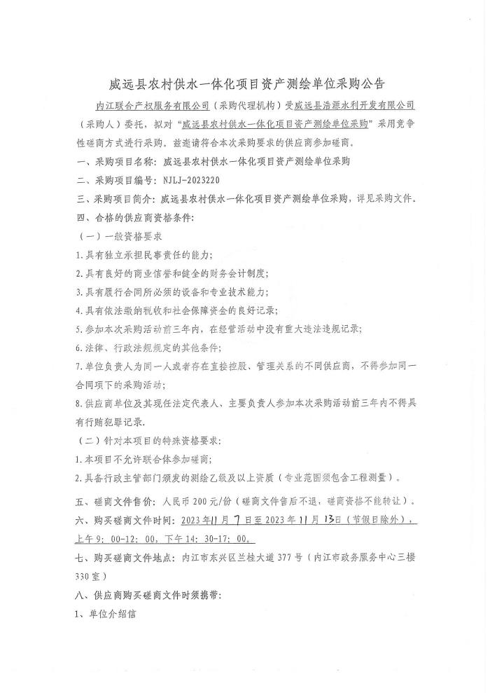 威遠(yuǎn)縣農(nóng)村供水一體化項(xiàng)目資產(chǎn)測繪單位采購公告