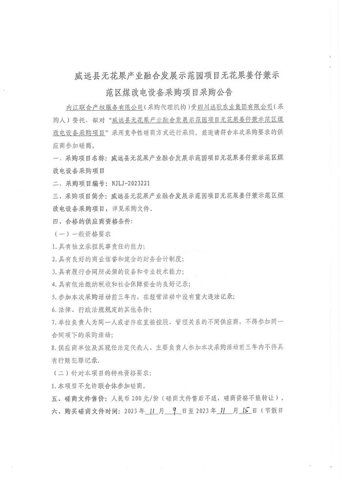 威遠(yuǎn)縣無(wú)花果產(chǎn)業(yè)融合發(fā)展示范園項(xiàng)目無(wú)花果姜仔兼示范區(qū)煤改電設(shè)備采購(gòu)項(xiàng)目采購(gòu)公告