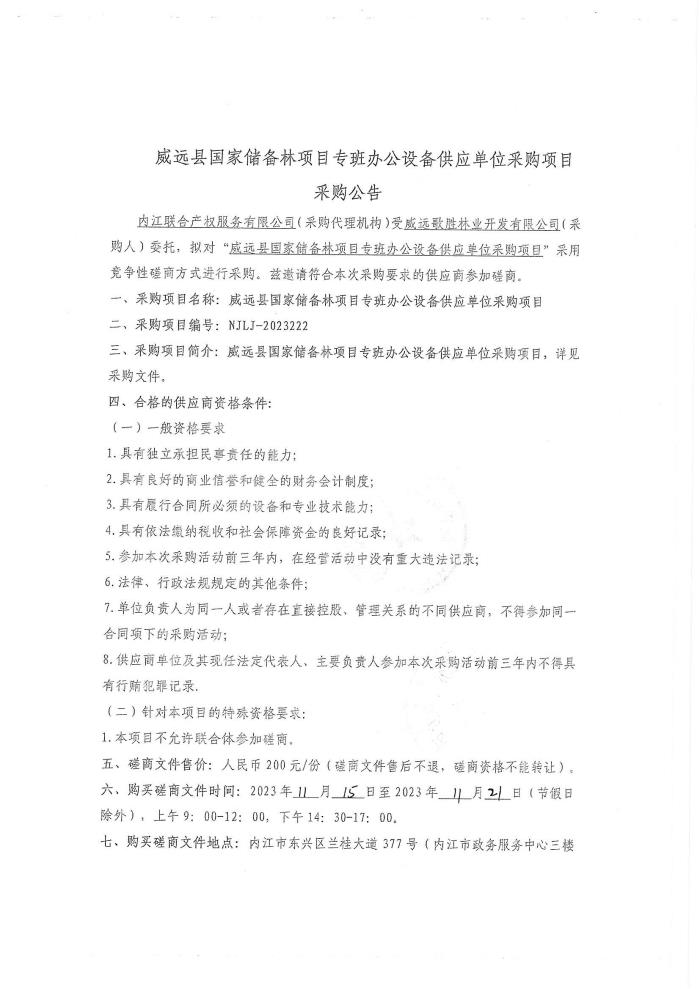 威遠(yuǎn)縣國家儲(chǔ)備林項(xiàng)目專班辦公設(shè)備供應(yīng)單位采購項(xiàng)目采購公告