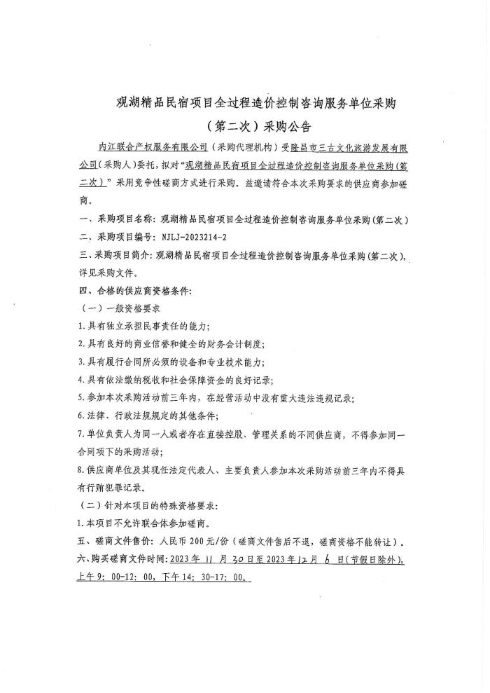 觀湖精品民宿項目全過程造價控制咨詢服務(wù)單位采購(第二次)采購公告