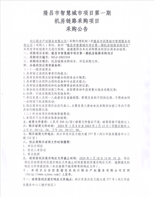 隆昌市智慧城市項(xiàng)目第一期機(jī)房鏈路采購項(xiàng)目采購公告