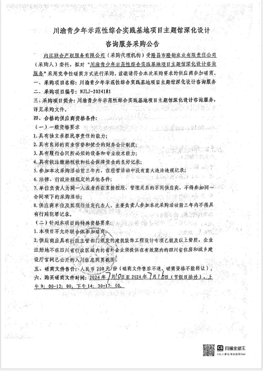 川渝青少年示范性綜合實踐基地項目主題館深化設計咨詢服務采購公告