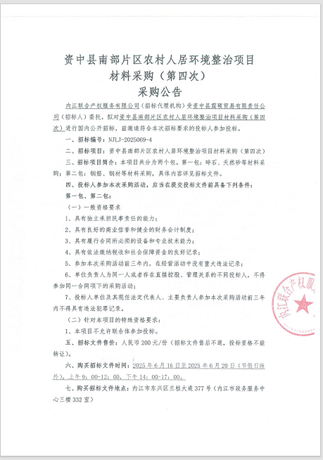 資中縣南部片區(qū)農(nóng)村人居環(huán)境整治項(xiàng)目材料采購(gòu)(第四次)