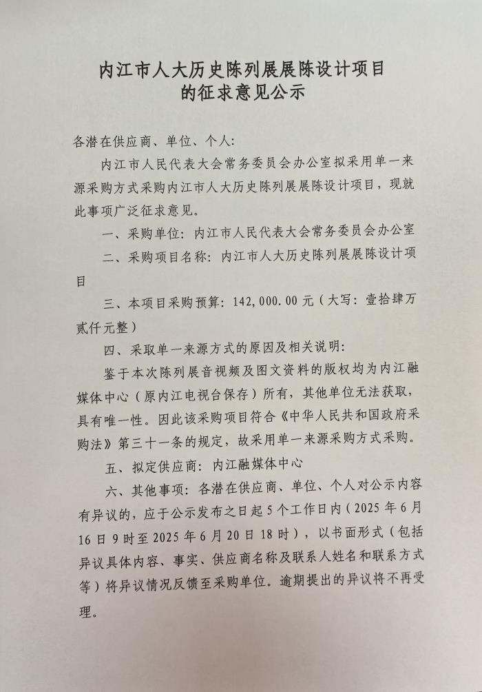 內(nèi)江市人大歷史陳列展展陳設(shè)計(jì)項(xiàng)目的征求意見(jiàn)公示