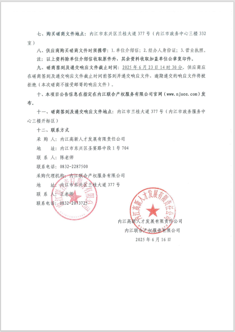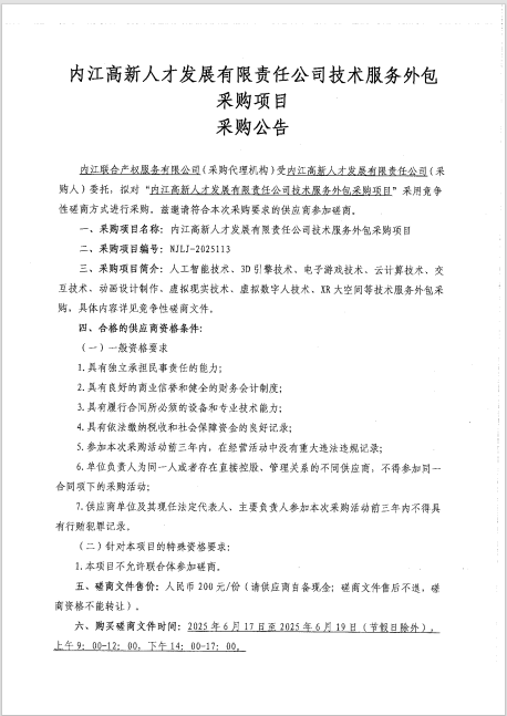 內(nèi)江高新人才發(fā)展有限責(zé)任公司技術(shù)服務(wù)外包采購項(xiàng)目采購公告