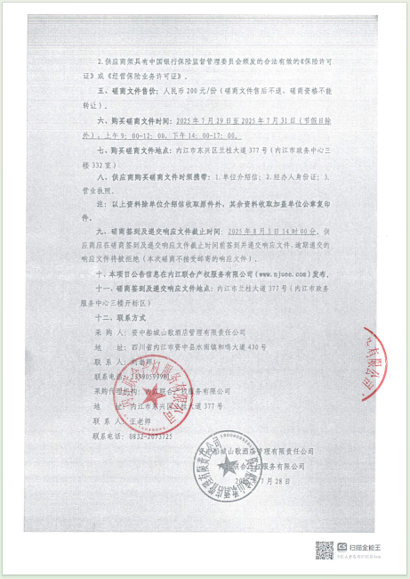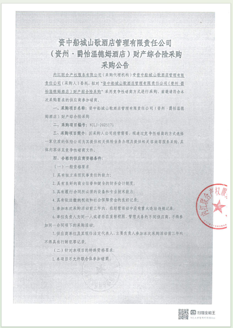 資中船城山歌酒店管理有限責(zé)任公司(資州·爵怡溫德姆酒店)財(cái)產(chǎn)綜合險(xiǎn)采購采購公告