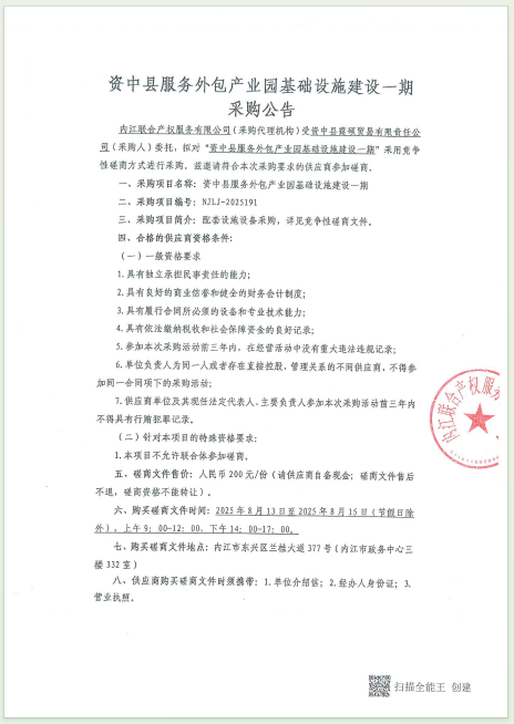 資中縣服務(wù)外包產(chǎn)業(yè)園基礎(chǔ)設(shè)施建設(shè)一期采購(gòu)項(xiàng)目