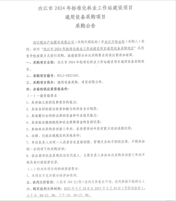 內(nèi)江市2024年標(biāo)準(zhǔn)化林業(yè)工作站建設(shè)項(xiàng)目通用設(shè)備采購項(xiàng)目采購公告