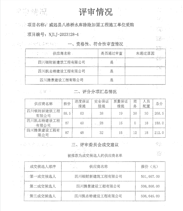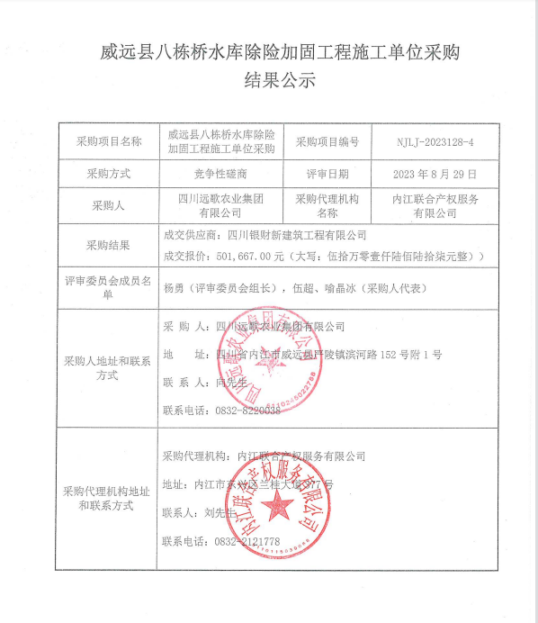威遠縣八棟橋水庫除險加固工程施工單位采購結果公示