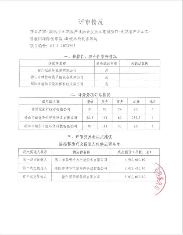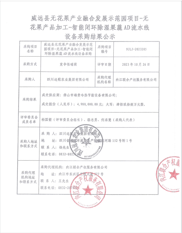 威遠(yuǎn)縣無花果產(chǎn)業(yè)融合發(fā)展示范園項(xiàng)目-無花果產(chǎn)品加工-智能閉環(huán)除濕果蔬AD流水線設(shè)備采購結(jié)果公示