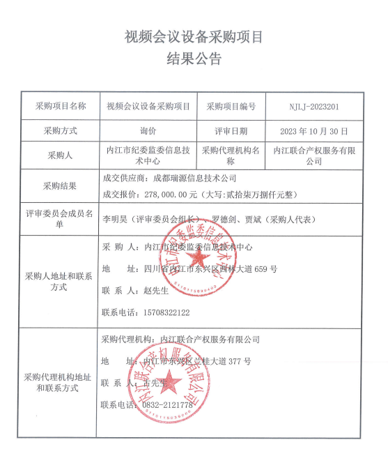 視頻會(huì)議設(shè)備采購項(xiàng)目結(jié)果公告