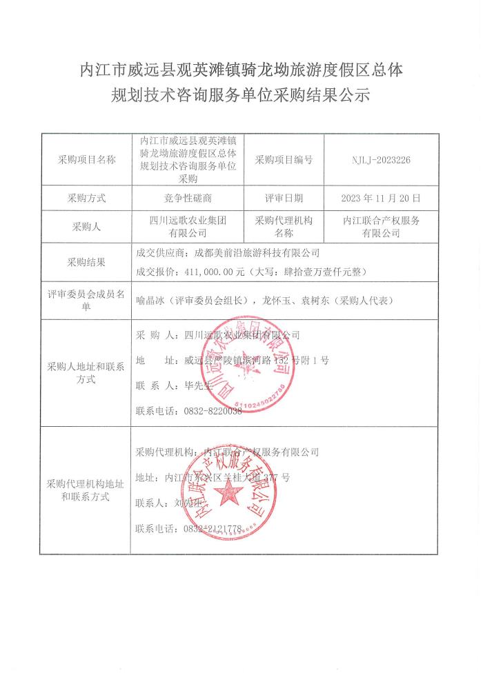 內(nèi)江市威遠(yuǎn)縣觀英灘鎮(zhèn)騎龍坳旅游度假區(qū)總體規(guī)劃技術(shù)咨詢服務(wù)單位采購結(jié)果公示
