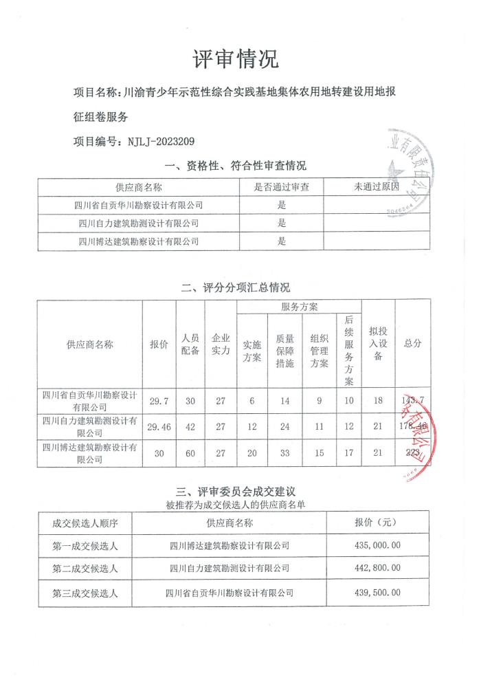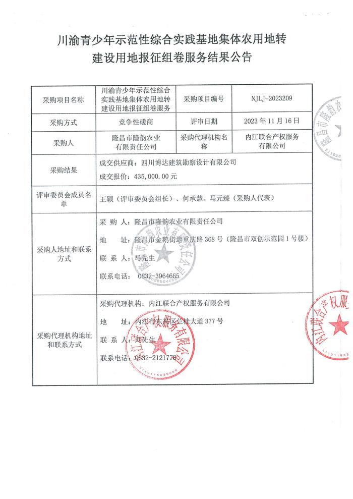 川渝青少年示范性綜合實(shí)踐基地集體農(nóng)用地轉(zhuǎn)建設(shè)用地報(bào)征組卷服務(wù)結(jié)果公告