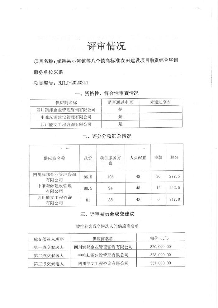 威遠(yuǎn)縣小河鎮(zhèn)等八個(gè)鎮(zhèn)高標(biāo)準(zhǔn)農(nóng)田建設(shè)項(xiàng)目融資綜合咨詢服務(wù)單位采購(gòu)結(jié)果公示