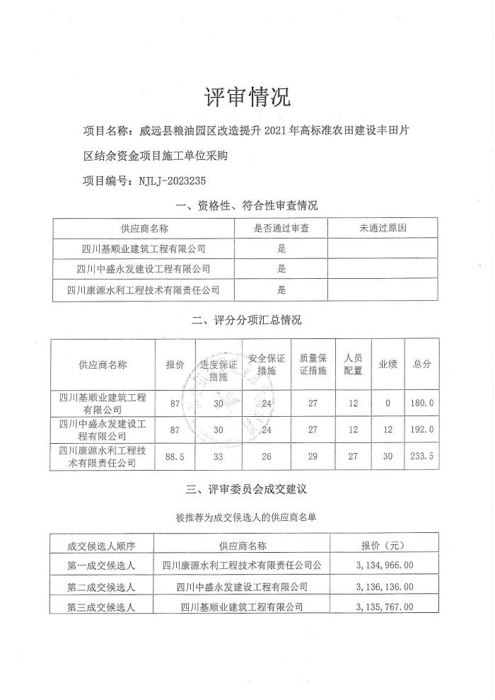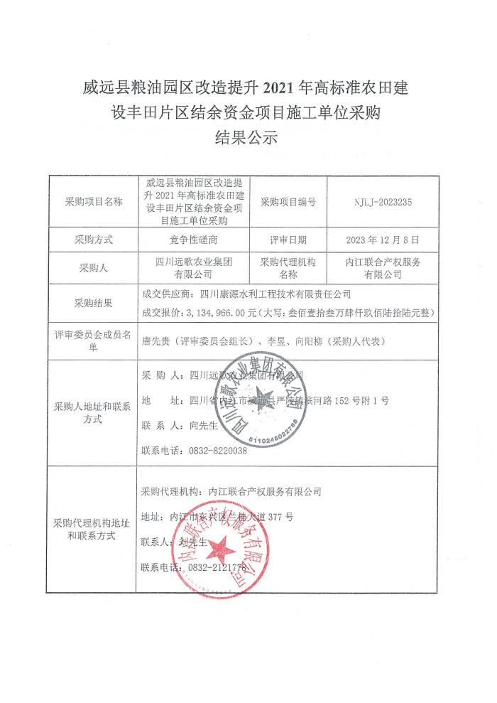 威遠縣糧油園區(qū)改造提升2021年高標準農(nóng)田建設豐田片區(qū)結(jié)余資金項目施工單位采購結(jié)果公示