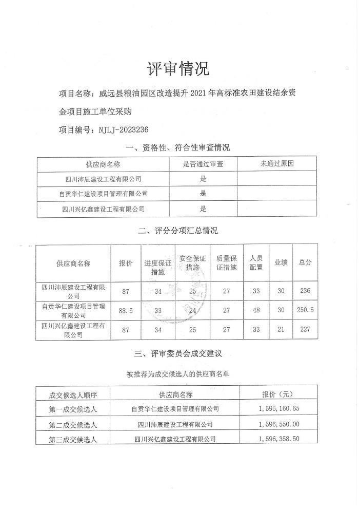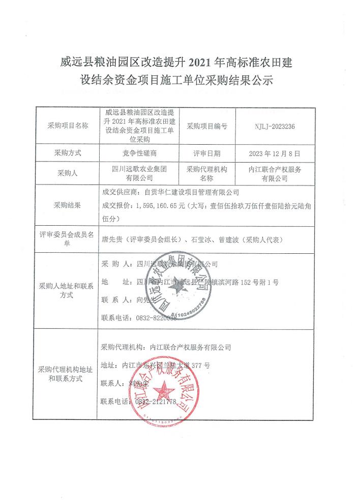 威遠縣糧油園區(qū)改造提升2021年高標準農(nóng)田建設(shè)結(jié)余資金項目施工單位結(jié)果公示