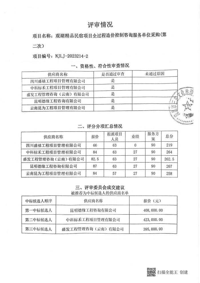 觀湖精品民宿項(xiàng)目全過程造價(jià)控制咨詢服務(wù)單位采購(第二次)結(jié)果公告