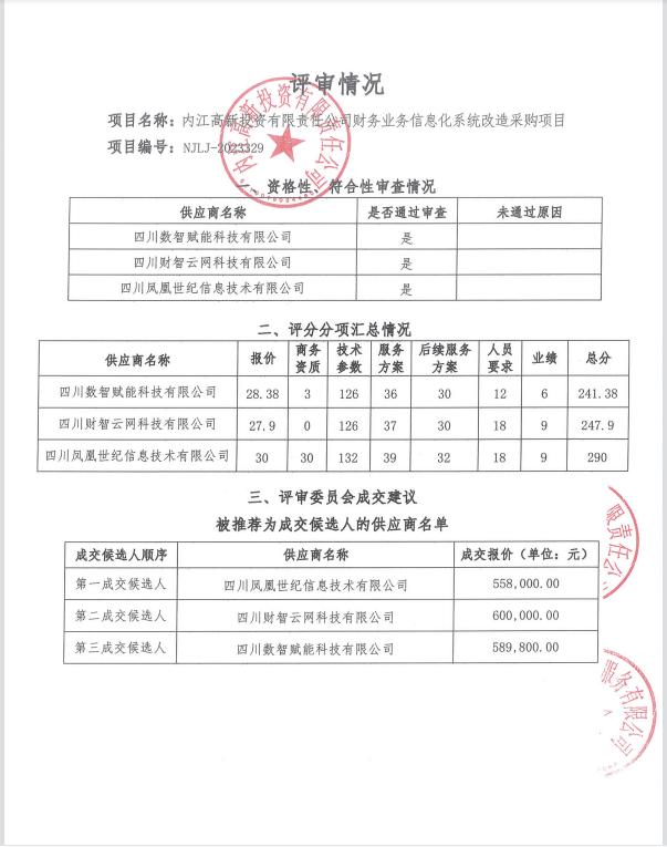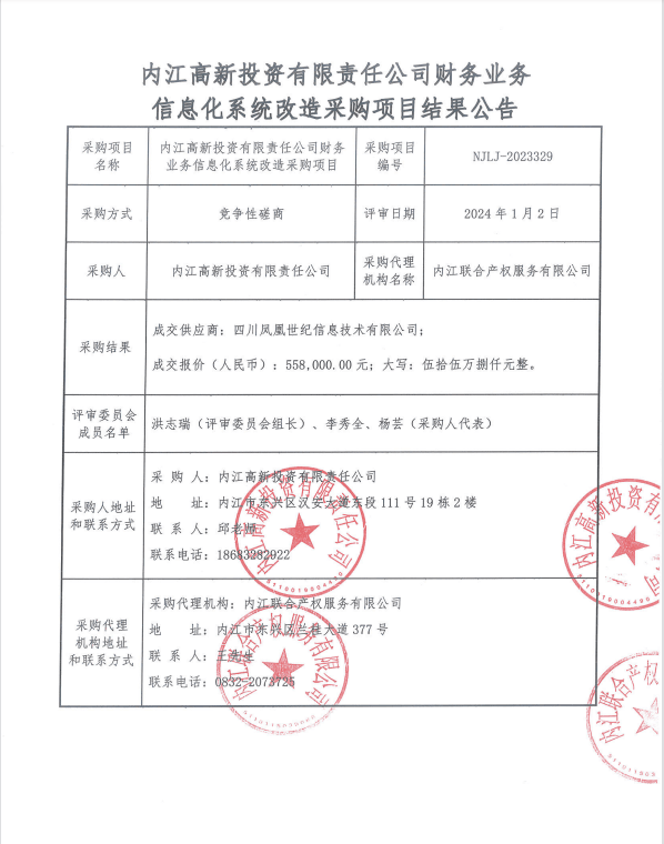 內(nèi)江高新投資有限責任公司財務業(yè)務信息化系統(tǒng)改造采購項目結(jié)果公告