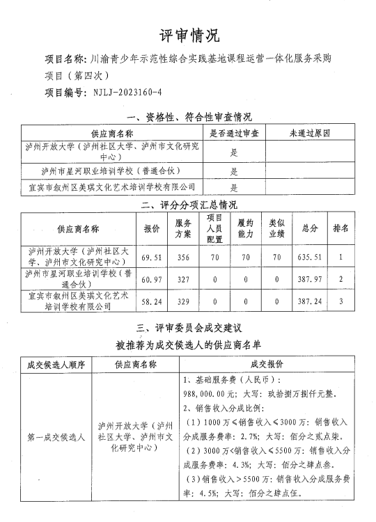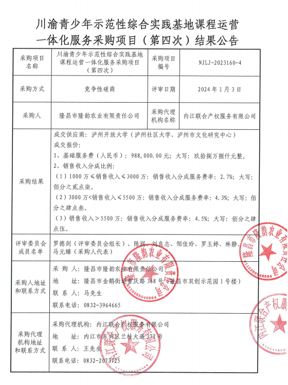 川渝青少年示范性綜合實踐基地課程運營一體化服務采購項目(第四次)結果公告