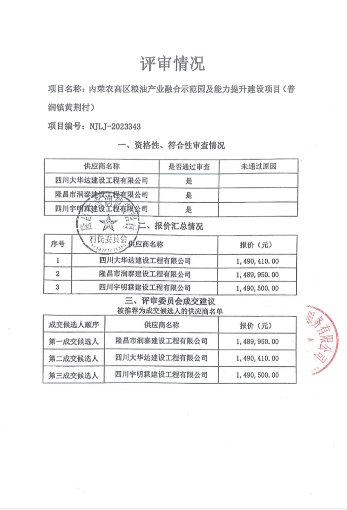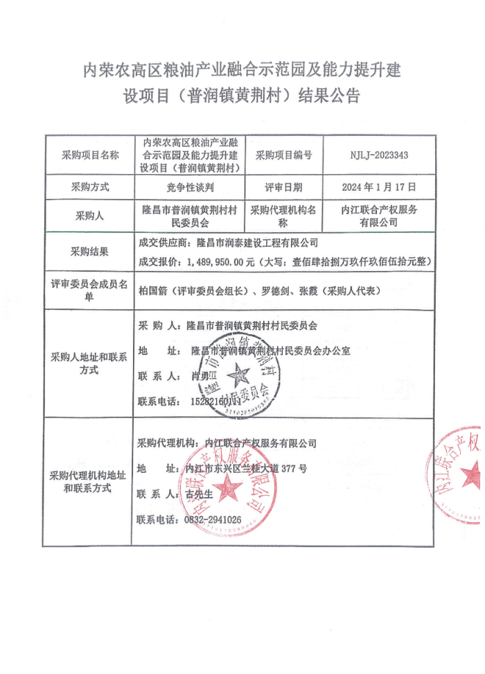 內(nèi)榮農(nóng)高區(qū)糧油產(chǎn)業(yè)融合示范園及能力提升建設(shè)項(xiàng)目(普潤鎮(zhèn)黃荊村)結(jié)果公告