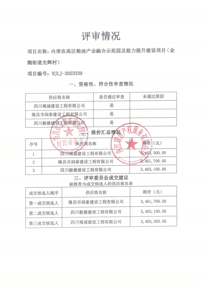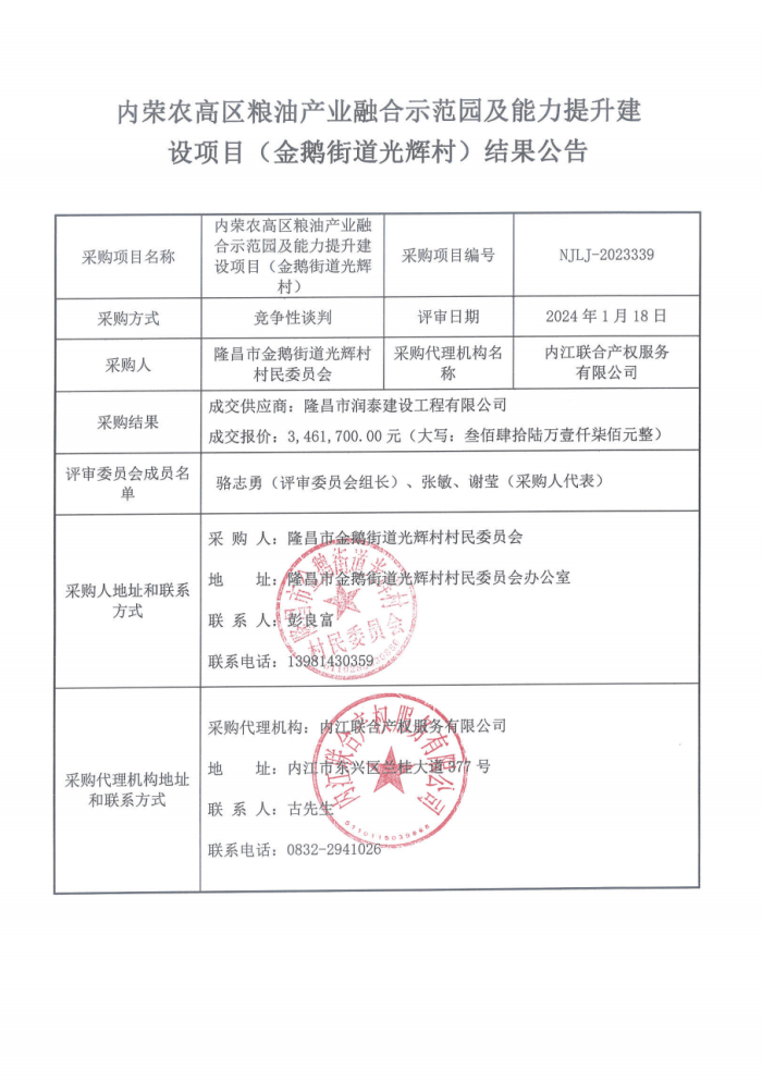內榮農高區(qū)糧油產(chǎn)業(yè)融合示范園及能力提升建設項目(金鵝街道光輝村)結果公告
