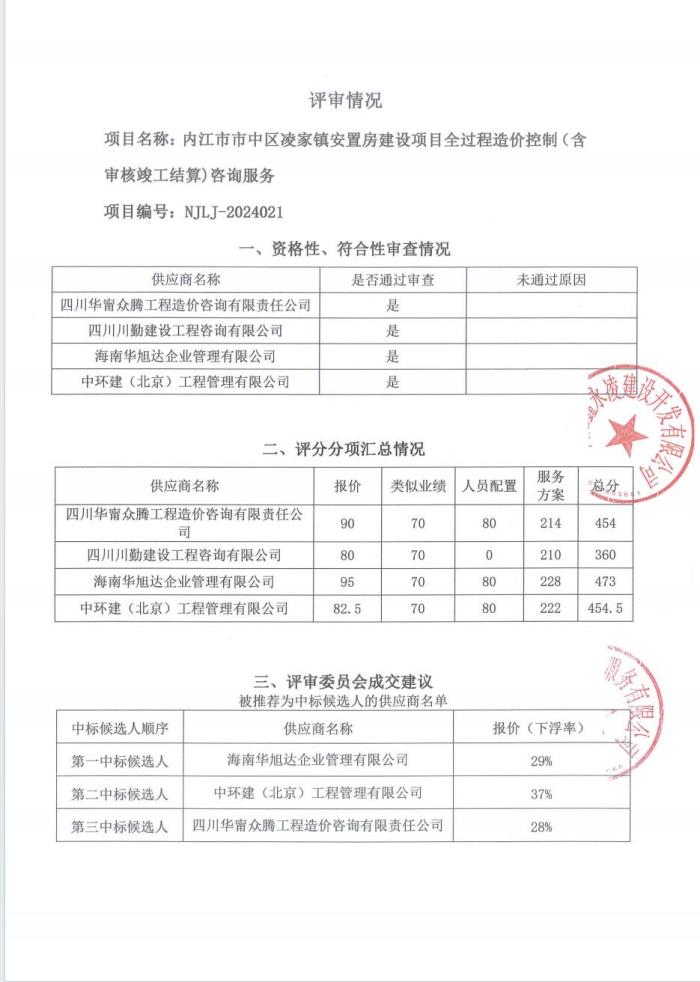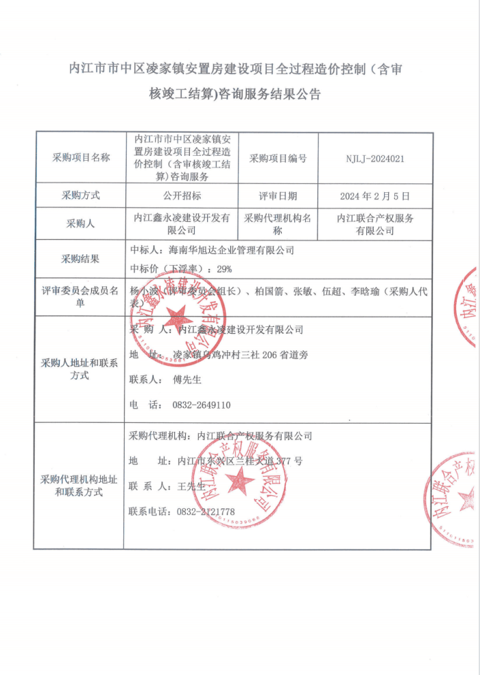 內(nèi)江市市中區(qū)凌家鎮(zhèn)安置房建設(shè)項(xiàng)目全過(guò)程造價(jià)控制(含審核竣工結(jié)算)咨詢服務(wù)結(jié)果公告