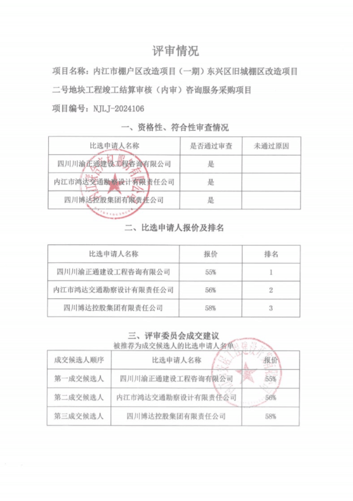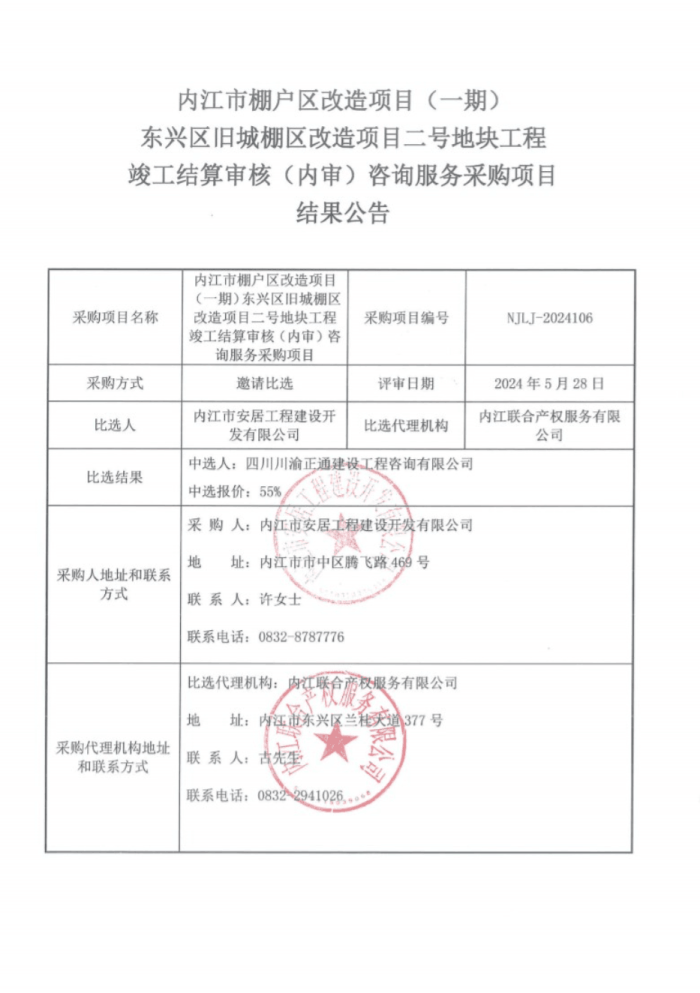 內(nèi)江市棚戶區(qū)改造項(xiàng)目(一期)東興區(qū)舊城棚區(qū)改造項(xiàng)目二號(hào)地塊工程竣工結(jié)算審核(內(nèi)審)咨詢服務(wù)采購(gòu)項(xiàng)目結(jié)果公告
