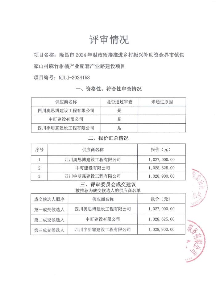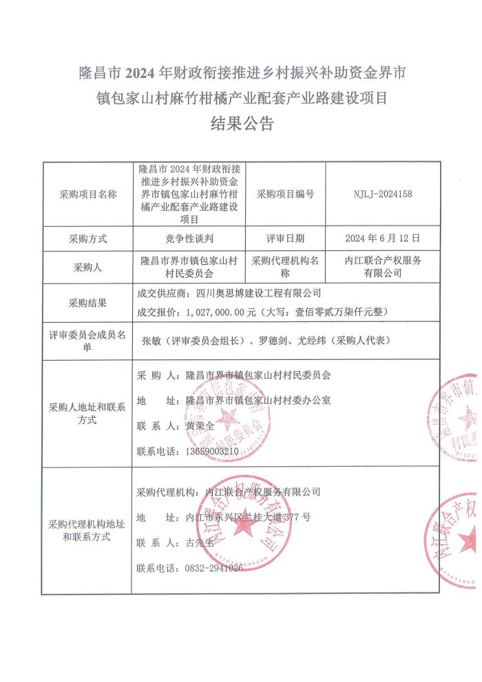 隆昌市2024年財政銜接推進鄉(xiāng)村振興補助資金界市鎮(zhèn)包家山村麻竹柑橘產(chǎn)業(yè)配套產(chǎn)業(yè)路建設(shè)項目結(jié)果公告