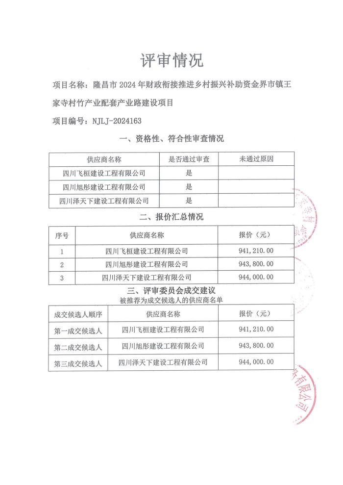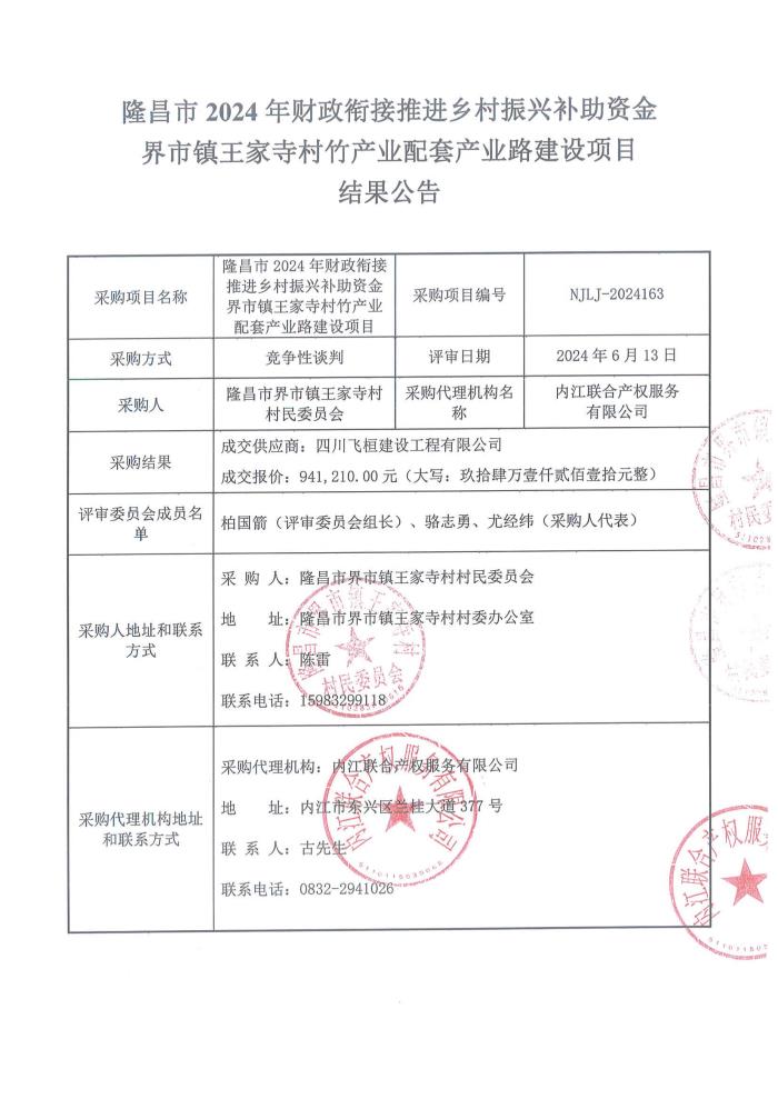 隆昌市2024年財(cái)政銜接推進(jìn)鄉(xiāng)村振興補(bǔ)助資金界市鎮(zhèn)王家寺村竹產(chǎn)業(yè)配套產(chǎn)業(yè)路建設(shè)項(xiàng)目結(jié)果公告