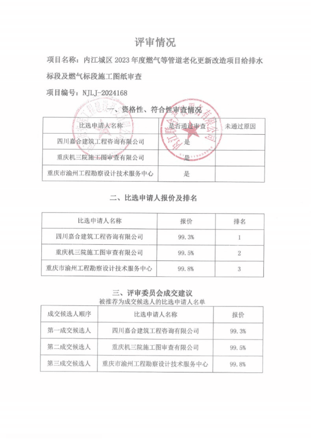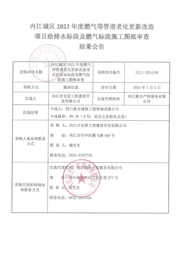 內(nèi)江城區(qū)2023年度燃?xì)獾裙艿览匣赂脑祉?xiàng)目給排水標(biāo)段及燃?xì)鈽?biāo)段施工圖紙審查結(jié)果公告