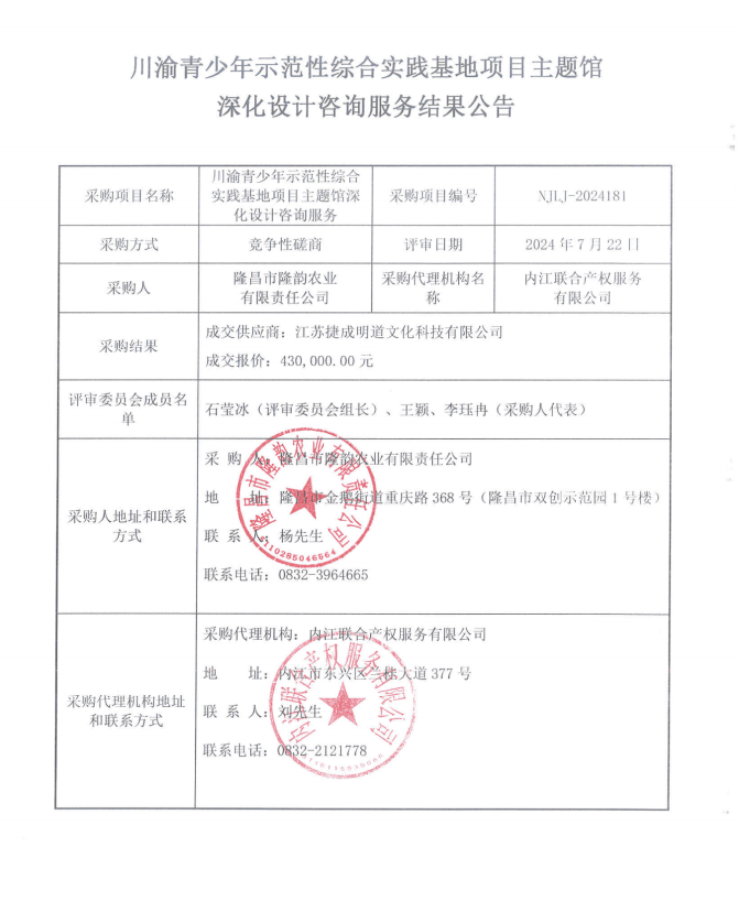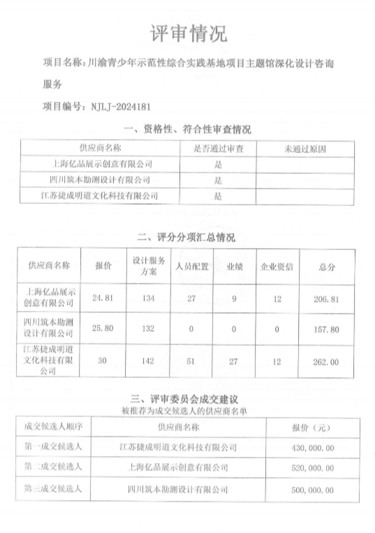 川渝青少年示范性綜合實踐基地項目主題館深化設(shè)計咨詢服務(wù)結(jié)果公告
