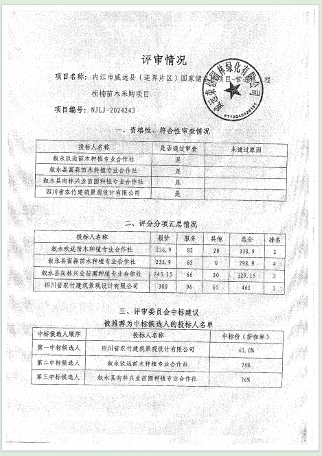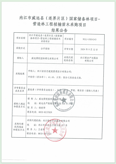 內(nèi)江市威遠縣(連界片區(qū))國家儲備林項目-營造林工程楨楠苗木采購項目結(jié)果公告