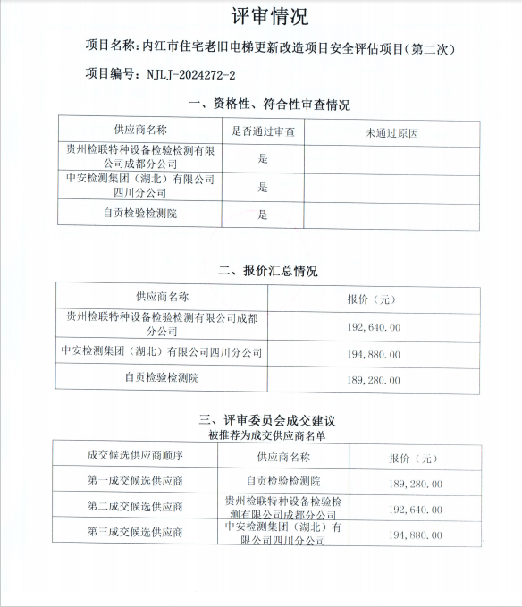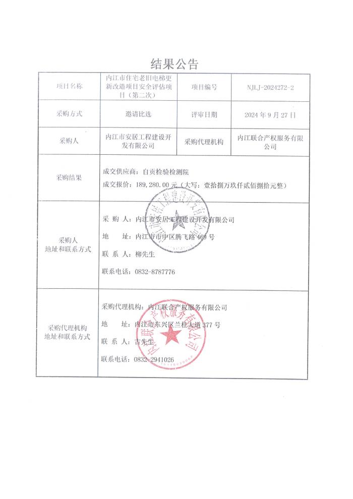 內(nèi)江市住宅老舊電梯更新改造項(xiàng)目安全評(píng)估項(xiàng)目(第二次)結(jié)果公告