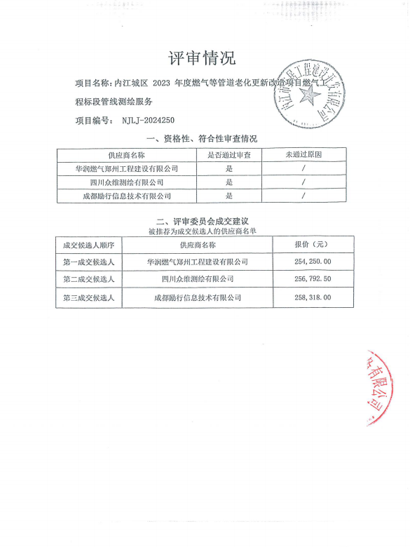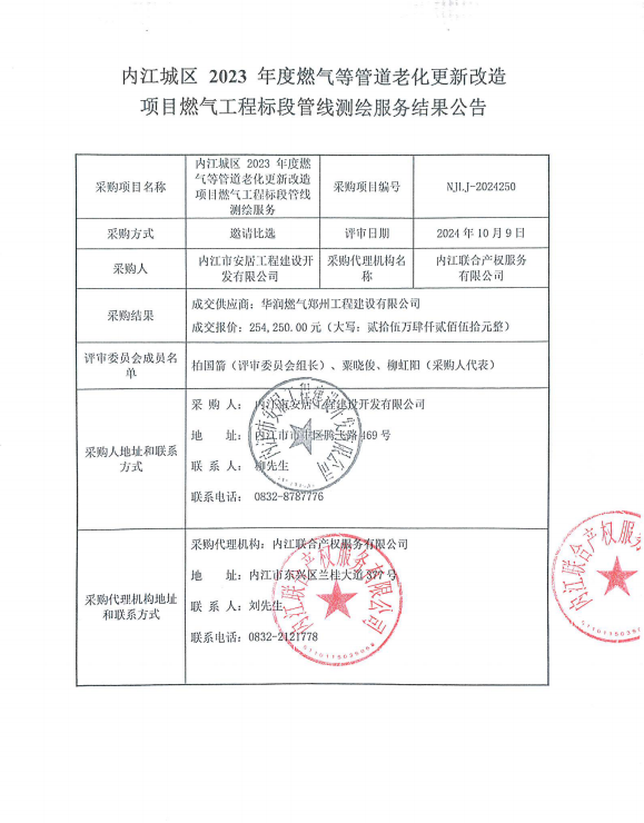 內(nèi)江城區(qū) 2023 年度燃氣等管道老化更新改造項目燃氣工程標段管線測繪服務(wù)結(jié)果公告