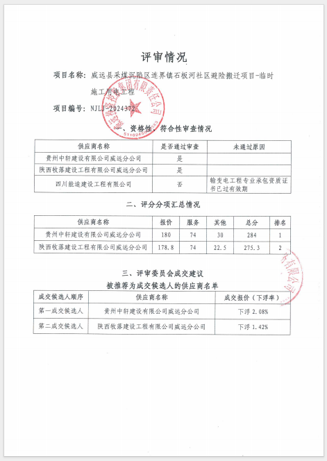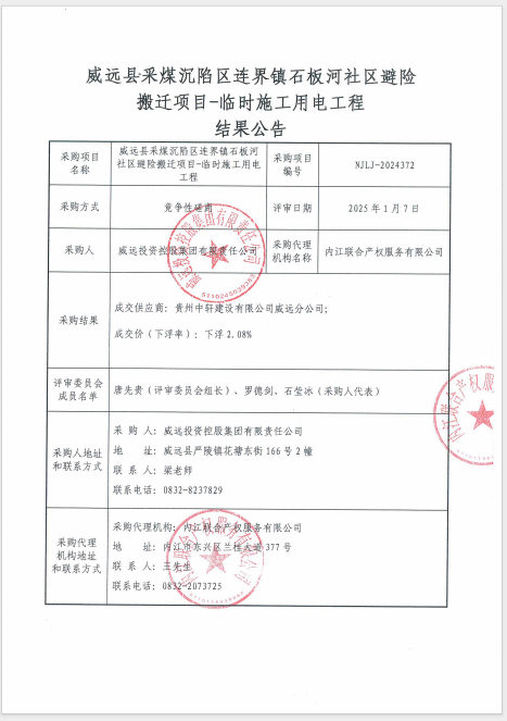 威遠縣采煤沉陷區(qū)連界鎮(zhèn)石板河社區(qū)避險搬遷項目-臨時施工用電工程結(jié)果公告