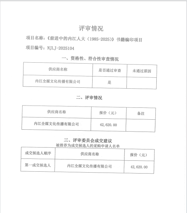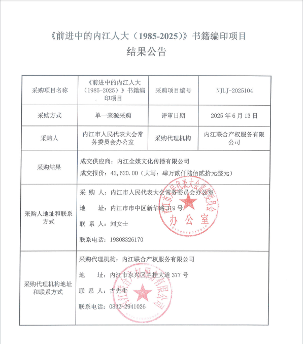《前進(jìn)中的內(nèi)江人大(1985-2025)》書籍編印項(xiàng)目結(jié)果公告