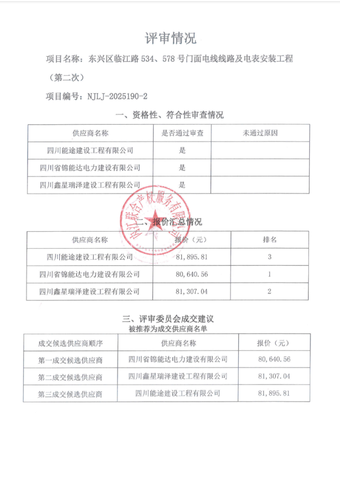 東興區(qū)臨江路534、578號門面電線線路及電表安裝工程(第二次)結(jié)果公告